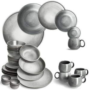 SPRINGLANE Misty Cliff – 24-tlg. Steingut Geschirrset für 4 Personen, Modernes Tafelservice mit Teller- und Schüsselset